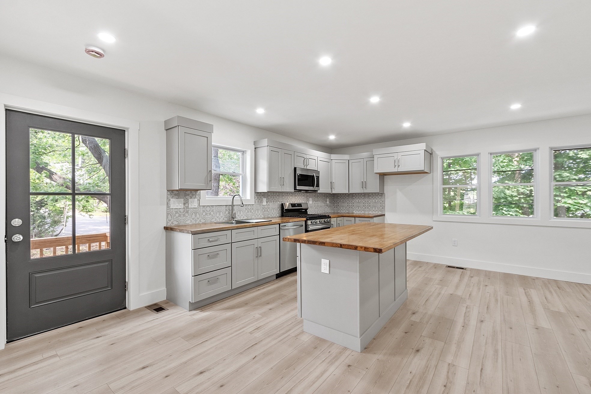 Fully Renovated!! Move right into this beautiful attached single-family home, where every detail shines across 3 BDM, 2 Full Bath's of stylish living. This home has been completely renovated and the first floor welcomes you with an open-concept layout featuring a modern kitchen with stainless steel appliances, butcher block counters, and a chic tiled backsplash—flowing seamlessly into a cozy living room with built-in electric fireplace. Wood-grain vinyl flooring runs throughout the entire home for a warm, cohesive feel. Relax in the 3-season porch, unload in the custom mudroom with bench seating, and refresh in the spacious exclusive use backyard for outside fun. Each bedroom has custom built in closets with beautiful storage doors. Plenty of additional storage in the basement. New Windows, Roof, Electric, HVAC, Plumbing, Siding, and so much more. Close to Rt 2, shopping, bike bath, and Leominster's Thriving Downtown.